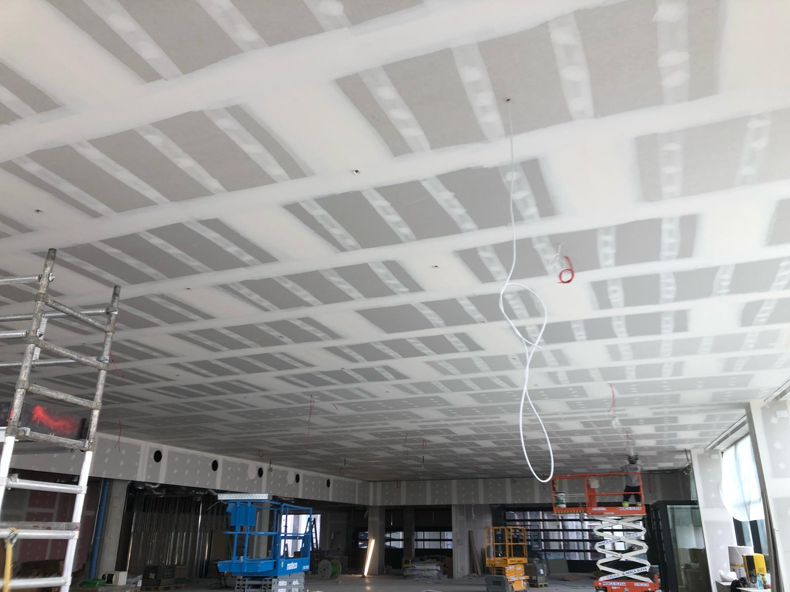 • Techos suspensos: Perfectos para ocultar instalaciones y mejorar la estética del ambiente. Se pueden integrar luces empotradas y sistemas de climatización.